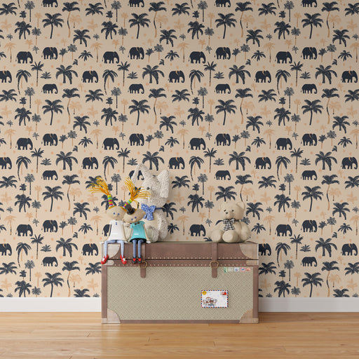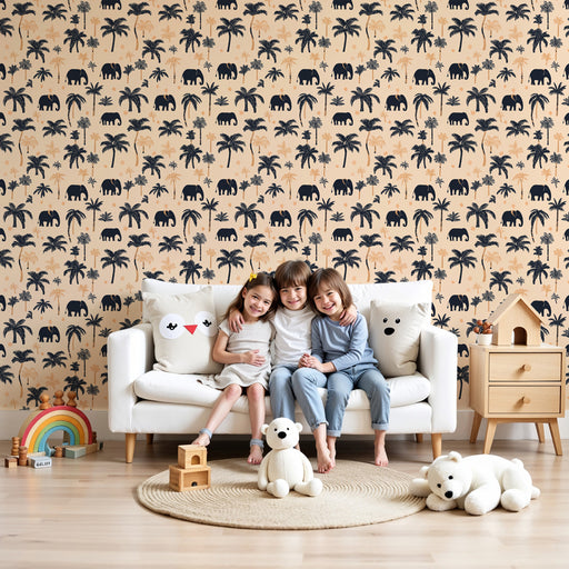 KidsWallPorta un tocco di magia nella camera del tuo bambino con questa carta da parati illustrata, decorata con adorabili elefanti che si muovono dolcemen...