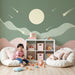Redesign la camera del tuo bambino in un posto troppo carino con questa carta da parati per bambini ispirata ai cieli notturni. Una dolce luna illumina un paesaggio di onde pastello, dove le stelle cadenti danzano attraverso un cielo rassicurante. Questo incantevole decoro crea un'atmosfera serena, perfetta per notti tranquille.