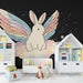 Carta da parati bambini | Coniglio con ali incantate e bolle di sogno