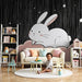 Crea un'atmosfera dolce e rilassante con questa carta da parati per bambini raffigurante un adorabile coniglio sdraiato su una nuvola soffice. In un cielo notturno pieno di stelle brillanti, questo piccolo compagno porta un tocco di magia alla camera del tuo bambino.