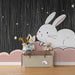 Carta da parati bambini | Coniglio sognante su una nuvola stellata