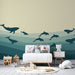 Immergiti nell'affascinante mondo dell'oceano con questa carta da parati per bambini che rappresenta maestose balene e giocosi delfini che nuotano in onde dolci. Le tonalità rilassanti di blu e verde creano un'atmosfera serena, perfetta per stimolare l'immaginazione del tuo bambino.