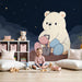 Carta da parati bambini | Orso sognante e nuvole stellate
