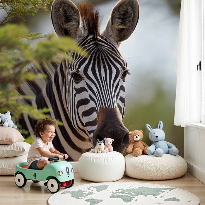 Il design dinamico e colorato ricorda le vaste savane africane, dove le zebre si muovono sotto il caldo sole. Sullo sfondo, una vegetazione lussureggiante e tonalità terrose contribuiscono a creare un'atmosfera serena e gioiosa nella camera del vostro bambino.