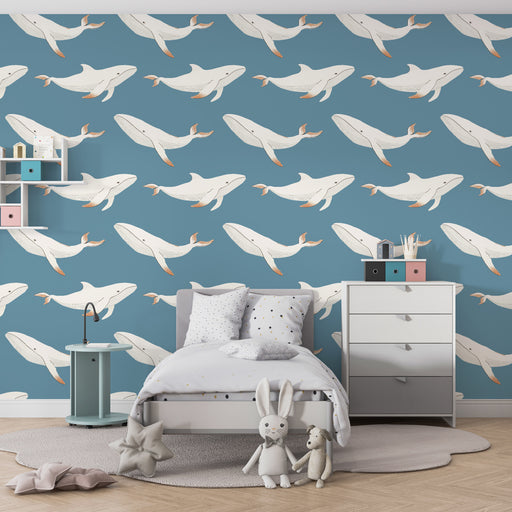 KidsWallRegala alla camera del tuo bambino un tocco marino con questa carta da parati per la camera dei bambini, decorata con maestose balene che nuotano n...