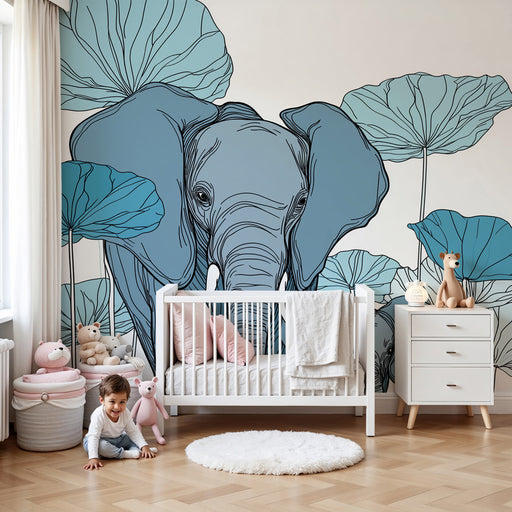 KidsWallImmergi il tuo bambino in un universo magico con questa carta da parati per la camera dei bambini, che raffigura due eleganti elefanti che camminan...