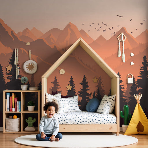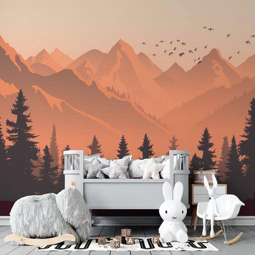 KidsWallImmergete il vostro bambino in un universo maestoso con questa carta da parati bambini, dove le cime montuose si estendono all'infinito in una sfum...