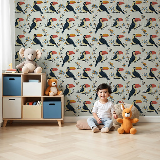KidsWallPorta un tocco di esuberanza nella camera dei tuoi bambini con questa carta da parati per la camera dei bambini, illustrata con affascinanti tucani...