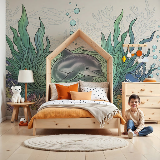 KidsWallSvegliate lo spirito avventuroso del vostro bambino con questa carta da parati per la camera dei bambini che raffigura un adorabile delfino che nuo...