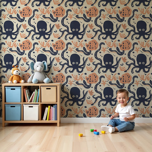 KidsWallTrasforma la stanza del tuo bambino in un affascinante universo marino con questa carta da parati a tema polpo. Ogni polpo, sorridente e colorato, ...