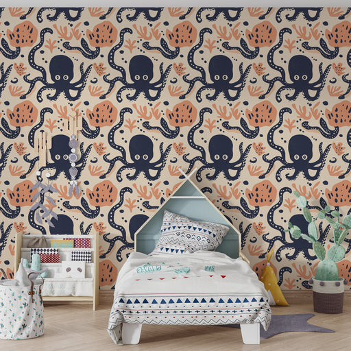 Carta da parati bambini a motivi | Adorabili polpi e coralli colorati