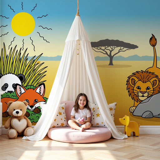 Carta da parati bambini | Avventura nella savana con animali colorati