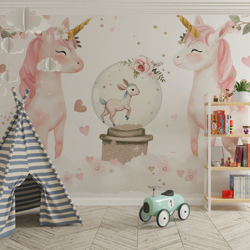 KidsWallImmergi il tuo bambino in un universo fiabesco con questa carta da parati bambini, dove la magia degli unicorni si invita nel suo spazio da sogno. ...