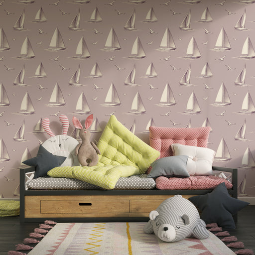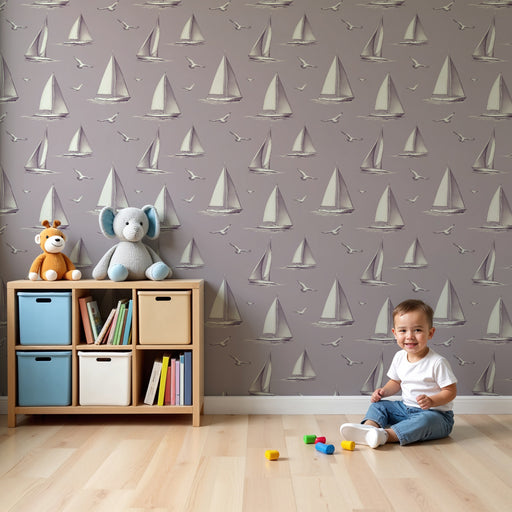 KidsWallPorta un tocco di tranquillità alla camera del tuo bambino con questa carta da parati nautica, dove incantevoli velieri scivolano dolcemente su uno...