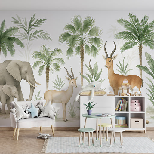 Carta da parati bambini | Safari animale e vegetazione lussureggiante