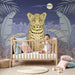 Trasforma la camera dei tuoi bambini in un vero santuario della giungla con questa carta da parati per bambini che raffigura un maestoso leopardo. Posizionato sotto un cielo stellato, questo luminoso leopardo attira tutti gli sguardi, circondato da una vegetazione lussureggiante e un'atmosfera rilassante.