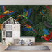 Carta da parati bambini | Volo di pappagalli colorati nel cuore della giungla tropicale