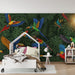 Le fronde tropicali sullo sfondo, in sfumature di verde profondo, accentuano la bellezza dei pappagalli e aggiungono una sensazione di profondità alla stanza. Questo decoro coinvolgente stimola l'immaginazione e invita all'avventura, perfetto per stimolare la curiosità dei piccoli esploratori.