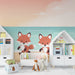 Immergiti nell'universo ludico e colorato di questa carta da parati per bambini che rappresenta due adorabili volpi che corrono lungo una spiaggia soleggiata. Con uno sfondo morbido in cui il cielo pastello si mescola con il mare turchese, questa decorazione crea un'atmosfera allegra e rilassante, perfetta per una camera per bambini.