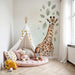 Geef de babykamer een vleugje verwondering met dit delicate behang voor de babykamer, met een majestueuze giraffe omringd door zachte, rustgevende bladeren. Zijn nieuwsgierige en vredige blik nodigt uit tot dagdromen en verbeelding te midden van een natuurlijke omgeving.