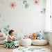 Redecoreer de kamer van je baby met dit babykamerbehang versierd met delicate bloemen en rustgevend blad. De zachte tinten groen en roze creëren een serene sfeer, ideaal voor rust en zintuiglijke waarneming.