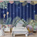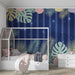 Babykamer behang | Tropische bloemen en bladeren op een sterrenachtergrond
