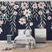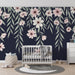 Babykamer behang | Delicate bloemen hangen aan een donkere achtergrond