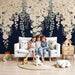 Babykamer behang | Delicate bloemen op een marine achtergrond voor een zachte sfeer