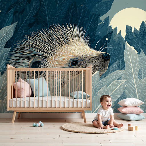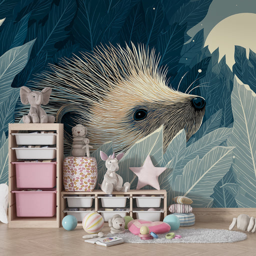 Dompel je onder in een wereld van magie en natuur met dit kinderbehang dat een nieuwsgierige egel laat zien die tevoorschijn komt uit de varens ond...