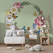 Redesigneer de kamer van je baby tot een schattige plek met dit babykamerbehang versierd met een prachtige bloemenkrans. Roze en witte pioenrozen, samen met stralende madeliefjes, creëren een zachte en rustgevende sfeer, ideaal voor slaap en dagdromen.
