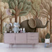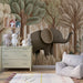 Kinderkamer behang | Olifant in een gestileerd bos in natuurlijke tinten