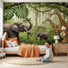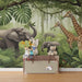 Redesignez la chambre de votre enfant en een echt natuurlijk toevluchtsoord met deze kinderbehang dat een levendige jungle scene voorstelt. Temidden van een weelderige vegetatie bewegen majestueuze olifanten en elegante giraffen rustig rond, waardoor een sfeer van avontuur en ontdekking ontstaat.