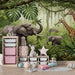 De zorgvuldig uitgewerkte details, van de grote oren van de olifanten tot de unieke vlekken van de giraffen, prikkelen de verbeelding en wekken nieuwsgierigheid. De tropische bladeren en kleurrijke bloemen voegen een vleugje magie toe aan deze meeslepende scène, waardoor kinderen worden uitgenodigd om een wilde en fascinerende wereld te verkennen.