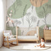 Babykamer behang | Delicate bloemen en organische vormen groen en beige