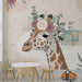 De delicate bloemmotieven rondom de giraf voegen een vleugje frisheid en zachtheid toe, terwijl de harmonieuze achtergrond een serene sfeer oproept. Elk detail is zorgvuldig ontworpen om de verbeelding van je kleintje te stimuleren en tegelijkertijd een vleugje charme aan de kamer toe te voegen.