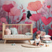 Ontdek ons behang met verliefde vogels en pastelbloemen, ideaal om een zachte en poëtische sfeer te creëren in de babykamer. Dit artistieke ontwerp toont delicate vogels omringd door bloemen in roze en pasteltinten, waardoor een rustgevende en betoverende omgeving ontstaat.