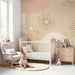 Babykamer behang | Madeliefje op drievoudige pastel achtergrond