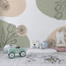 Babykamer behang | Delicate bloemen en zachte vormen tussen beige en saliegroen
