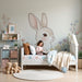 Breng een vleugje zachtheid en tederheid in de kamer van uw baby met deze babykamer behang dat een schattig konijn in het midden van een boeket van delicate bloemen illustreert. De pastelkleuren, variërend van blauw tot roze, creëren een rustige en warme sfeer, perfect voor een dromerige ruimte.