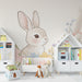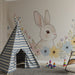Babykamer behang | Schattig konijn omringd door pastel bloemen