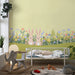 De delicate bloemen in verschillende tinten roze, blauw en geel voegen een vleugje frisheid en vrolijkheid toe aan de kamer. De zachte, heldere achtergrond draagt bij aan een warme sfeer, ideaal voor momenten van tederheid en spel. Elk detail is zorgvuldig ontworpen om de verbeelding van kinderen te stimuleren.