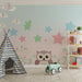 Babykamer behang | Schattige uil en kleurrijke sterren op een pastel achtergrond
