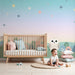 Babykamer behang | Schattige uil onder een pastelkleurige sterrenhemel