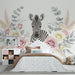 Babykamer behang | Schattige zebra omringd door delicate bloemen