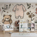 Papier peint chambre bébé | Ours en peluche et fleurs délicates