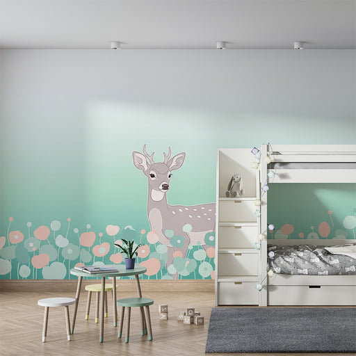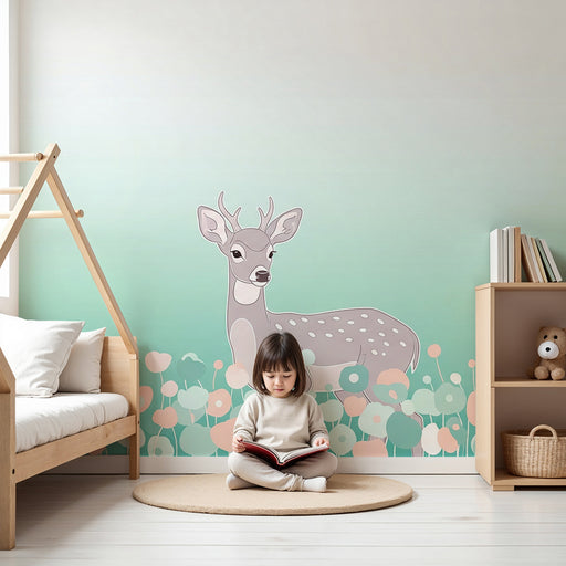 KidsWallTransformeer de kamer van uw baby tot een betoverende ruimte met dit babykamerbehang met een schattig hert midden in een veld van delicate bloemen....