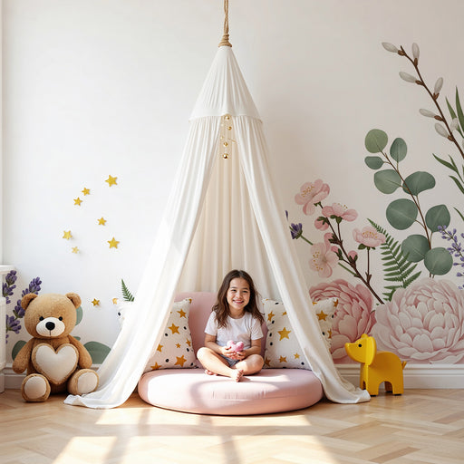 De collectie viert de bloemen diversiteit door verschillende stijlen die zich aanpassen aan elke sfeer. Van minimalistische motieven tot weelderige panorama's, de bloemen komen voor in gestileerde of realistische versies. Voor een complete natuurlijke onderdompeling, verken ons bos behang voor een natuurlijke touch. De veldbloemen boeketten staan naast verfijnde arrangementen, wat een perfect evenwicht biedt tussen fantasie en elegantie. De ecologische materialen behouden de levendigheid van de tinten terwijl ze het milieu respecteren. De zorgvuldig gereproduceerde botanische details - bloemblaadjes, meeldraden, bladnerven - transformeren de kinderkamer in een levend herbarium dat de nieuwsgierigheid voor de natuur wekt.