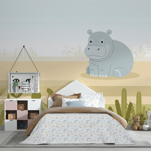 KidsWallTransformeer de kamer van uw baby in een echte wonderlijke tuin met deze babykamerbehang met een schattige nijlpaard. Dit speelse decor is versierd...