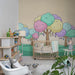 De zachte tinten roze, blauw, groen en geel brengen een vleugje tederheid en warmte, terwijl de kleurrijke snoepjes een speelse en lekkere noot toevoegen. Dit betoverende decor nodigt uit tot dagdromen en verwondering, en verandert de kamer in een ware magische tuin.