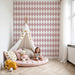 Babykamer behang | Zoete roze ruitjespatroon op een witte achtergrond